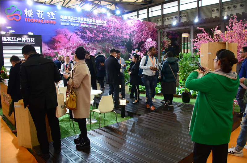 為期三天的中國國際地面材料及鋪裝技術(shù)博覽會圓滿落幕了,桃花江竹材在此次展會中取得了耀眼的成績。桃花江竹材的展臺,像一座小型的后花園,整個空間布局巧妙而精美,經(jīng)過人工雕琢后的竹子在這座花園中形態(tài)各異。